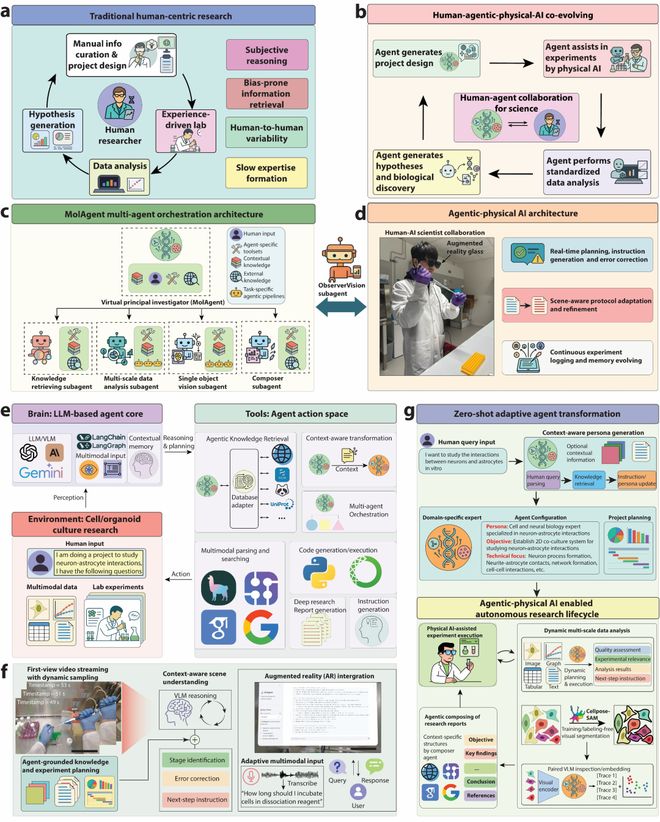 这一系统首次将人类研究者、具身 AI 智能体与可穿戴混合现实与增强现实(MR/AR)硬件深度融合,构建出一个与人类能够同时感知、推理并直接共同参与真实世界实验和制造过程的集成化智能平台。
