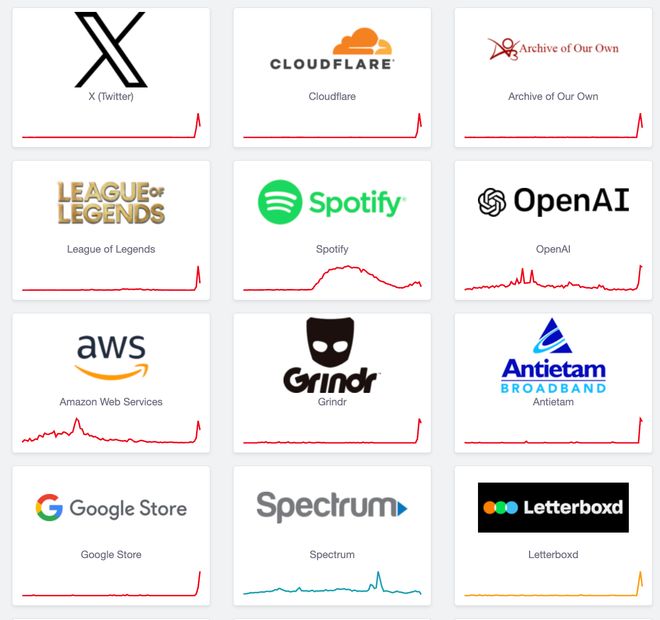宕机期间,X的部分功能中断,多家网站也陷入访问受阻。根据故障跟踪平台 Downdetector 的数据,除X之外,也有大量站点受到影响,相关报告数量持续攀升。用户在访问X、ChatGPT、DoorDash、IKEA,以及纽约市大都会运输署(MTA)等网站时,都看到与 Cloudflare 相关的错误信息。