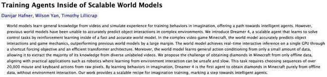 标题:Training Agents Inside of Scalable World Models
