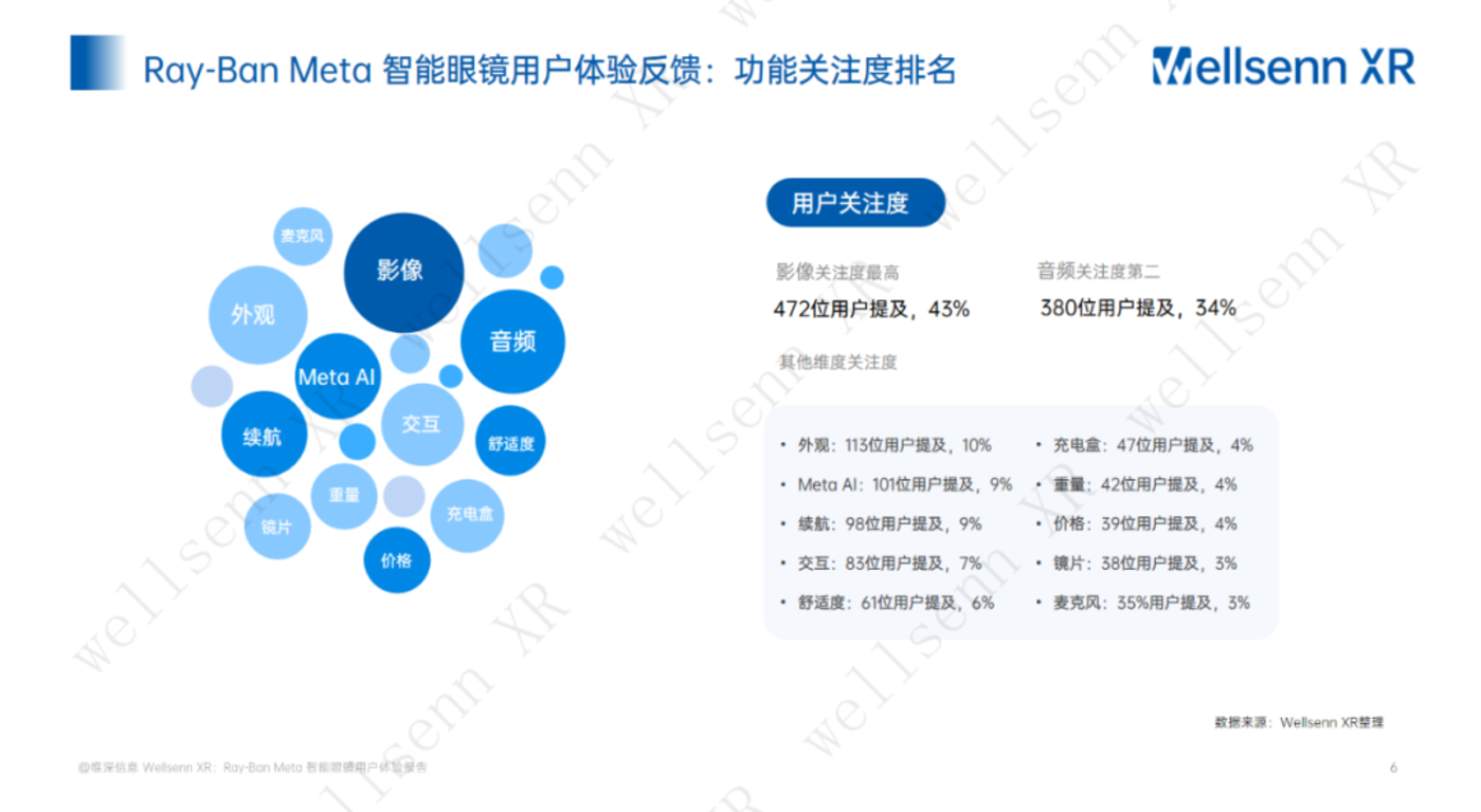 wellsenn XR 的用户调研数据显示,关注度最高的前三功能为影像(43%)、音频(34%)和外观(10%)。