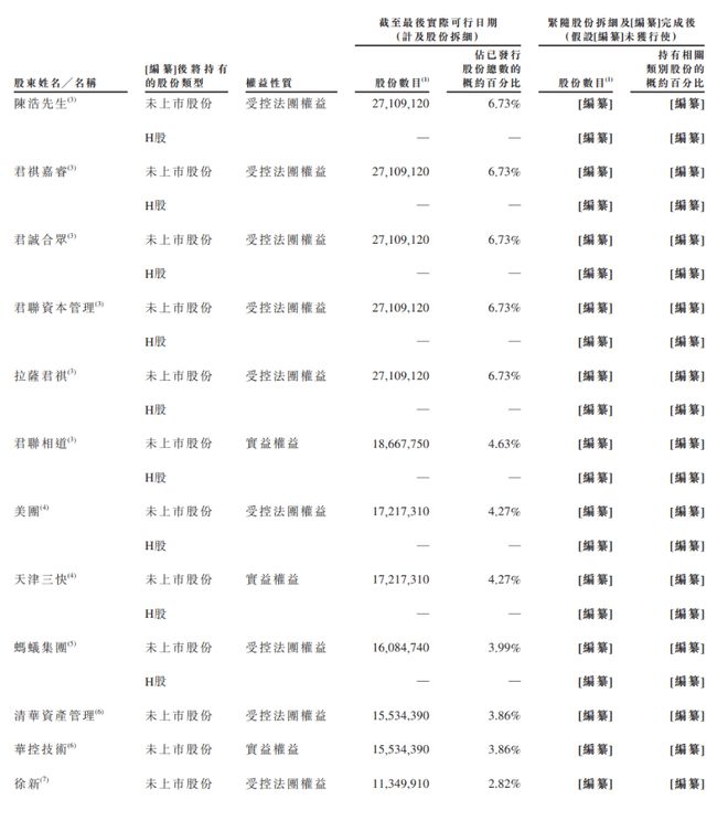 IPO 前,北京链湃持股 8.45%,慧惠持股 9.8%,智登持股 6.75%,君联资本持股 6.73%,美团持股 4.27%,启明创投持股 2.49%。