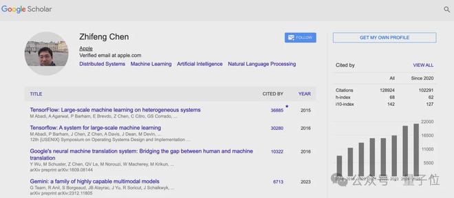 而且 TensorFlow 早期核心系统论文、Gemini 等,都有 Chen 参与的身影。