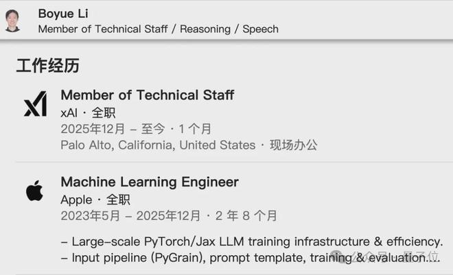 就在这个月,Li 离开工作近 3 年的苹果,加入马斯克旗下的 xAI。