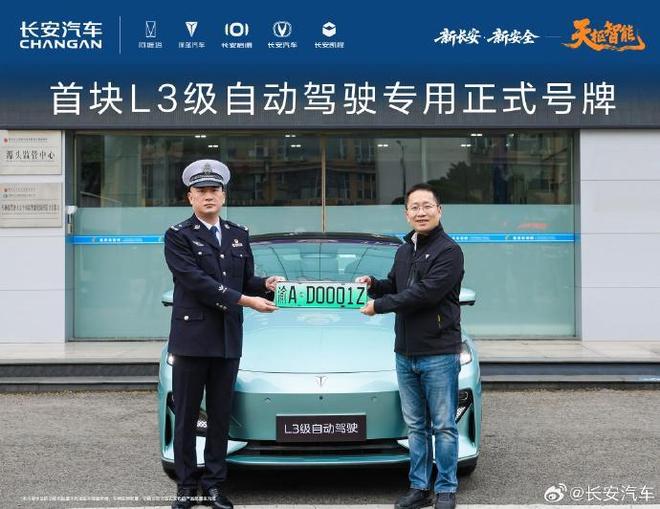 12 月 21 日消息,据长安汽车消息,首块 L3 级自动驾驶专用正式号牌“渝 AD0001Z”在重庆诞生,由重庆市公安局交通管理总队正式授予长安汽车,标志着长安汽车率先开启 L3 级自动驾驶时代。
