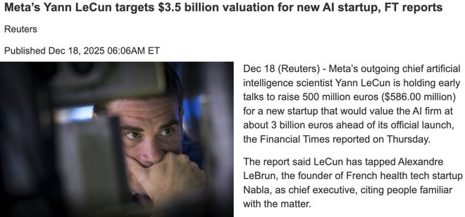 更重量级的,是首席 AI 科学家、图灵奖得主 Yann LeCun 的退出。