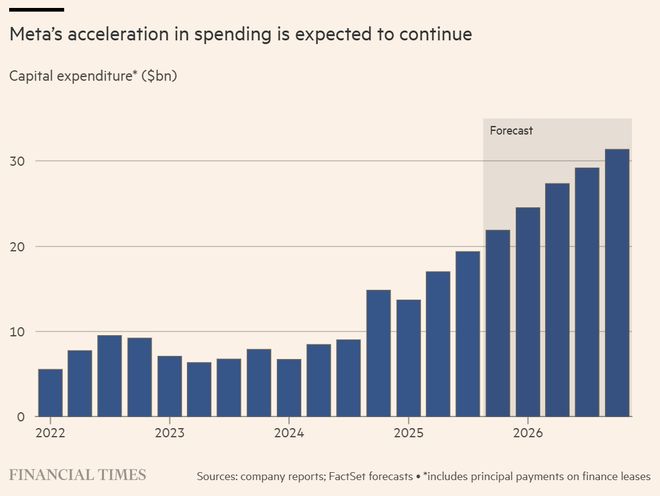 而 2025 年,Meta 的资本支出预计将达到至少 700 亿美元,远高于上一年的 390 亿美元。