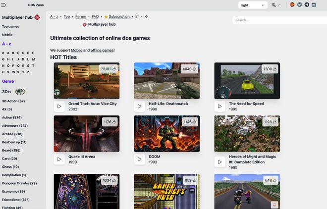 世超点进游戏的主页才发现,这个叫 DosZone 的网站,居然是一个经典游戏博物馆。