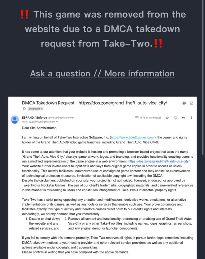 PS:写完稿子最后一句话,世超发现罪恶都市网页版已被 Take Two R 星警告下架。