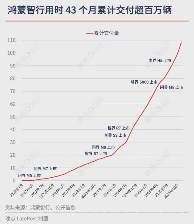 43 个月 100 万辆交付,五界按价格带分工覆盖 15 万至 100 万元