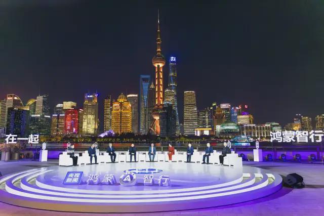 余承东与鸿蒙智行五界车企负责人参加央视新闻年度特别直播。