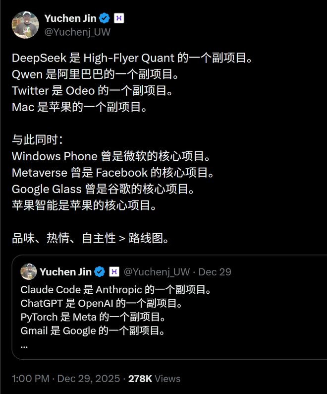 你知道吗,DeepSeekTwitter、Mac、Qwen,最初都只是副项目?真正改变世界的产品,可能根本不在公司的 PPT 路线图上。