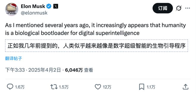 人类似乎越来越像是数字超级智能的生物引导程序。