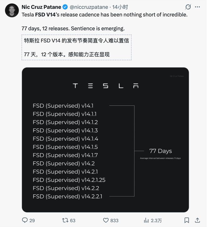 当 FSD v14 被推送到数百万车主的车机上时,一种奇怪的反馈开始在社交媒体上蔓延。