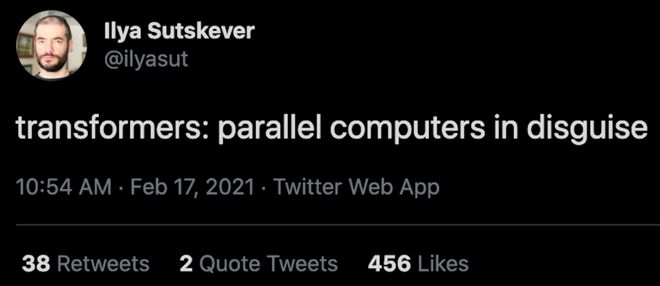 因为 Transformer 也是一台并行计算机。这里我引用一下 Ilya Sutskever 的一句话: