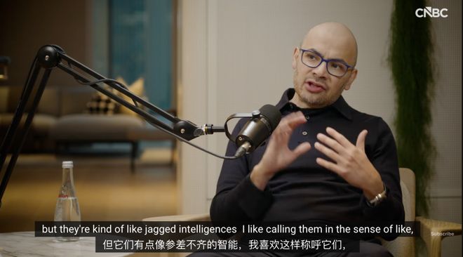 Hassabis用了一个非常精准且形象的词来描述这种状态:「参差不齐的智能」(Jagged Intelligence)。