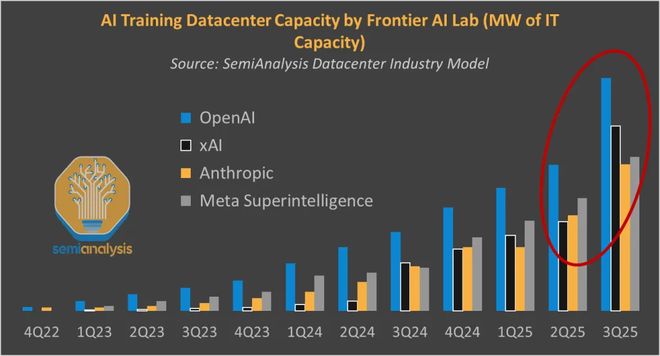 除了马斯克 xAI 之外,OpenAI、Meta、Anthropic 也在纷纷加码,目标直指吉瓦(GW)级,甚至更大规模的 AI 超算。