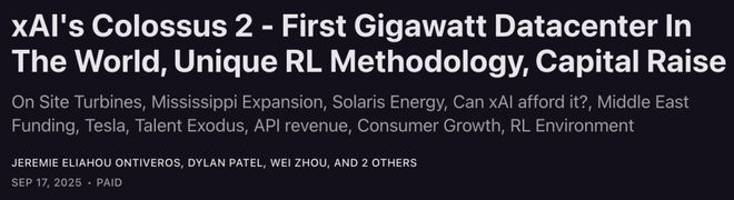 去年,SemiAnalysis 高级分析师一篇文章,曾深度分析了 Colossus 2 工程设计和所取得的成就。