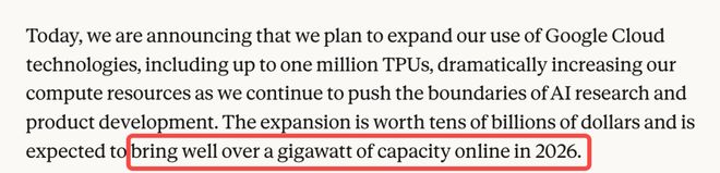 去年 10 月官宣,将把 Google Cloud TPU 扩展到最多 100 万颗 TPU,合同价值数百亿美元。