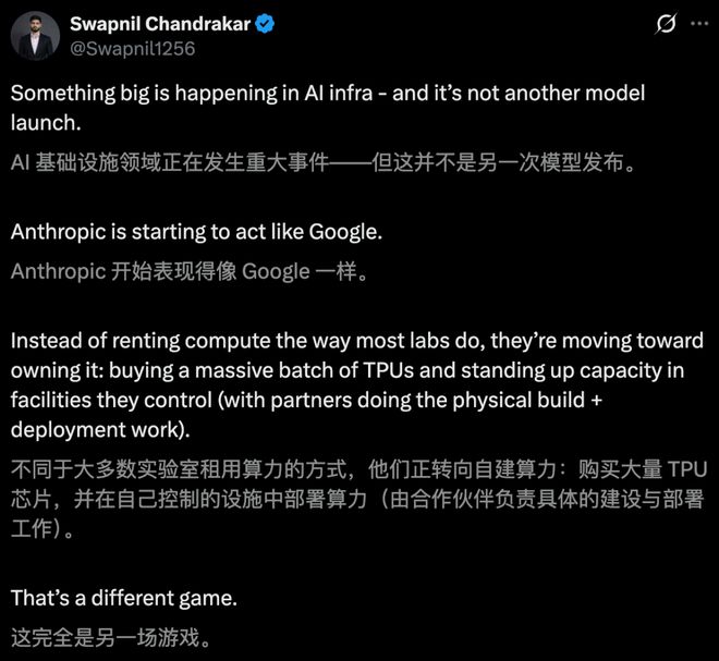 Anthropic 选择了一条更聚焦的路线:深度绑定 Google Cloud 的 TPU。