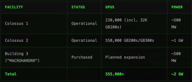 OpenAI、Anthropic 在内的很多劲敌还在规划 2027 年路线图,xAI 这边直接把「城市级」算力搞定了。