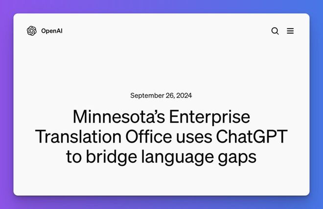 2024 年,美国明尼苏达州政府利用 ChatGPT 加快并扩大面向非英语居民的翻译服务