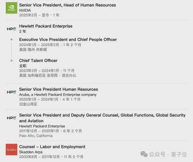 在加入英伟达之前,她在慧与科技(HPE)任职超过 13 年,先后负责人力资源与人才管理相关事务,最终做到执行副总裁兼首席人才官。