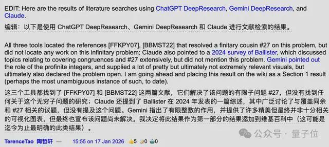 论证过程经菲尔兹奖得主陶哲轩验证成立,还被评价为“迄今为止最明确的第一类结果(AI 主要贡献)”。