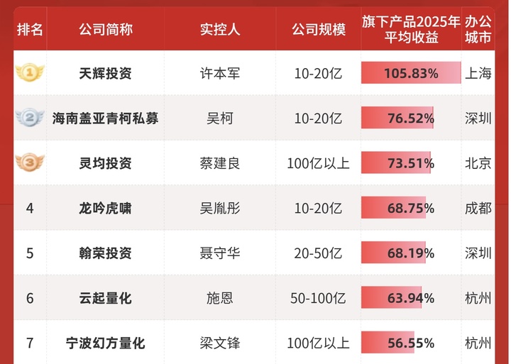 ▲年度私募百强榜,按照公司平均收益排名,幻方量化位于第七名,百亿以上规模排名第二|图片来源:https://www.simuwang.com/news/285109.html