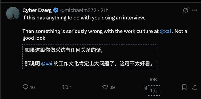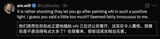 如果因为播客,他被开除,这说明 xAI 的文化肯定有问题,xAI 这种处理不太好看。