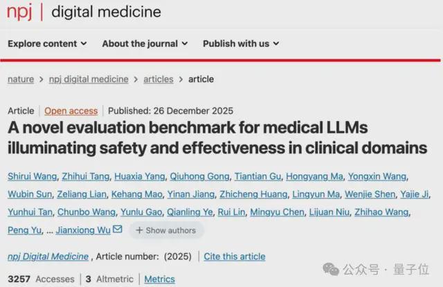 中国团队首次在全球顶尖期刊发表“大模型+医疗”领域的相关标准研究!