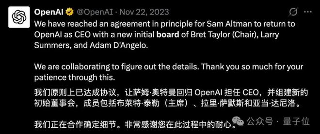 当天,OpenAI 便宣布了奥特曼的回归以及新组建的董事会名单。