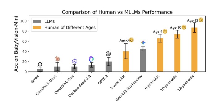 据量子位报道,多家研究机构最新发布的 BabyVision 视觉推理基准结果显示,当前最强多模态模型在视觉推理方面的表现,仍显著落后于人类儿童水平。