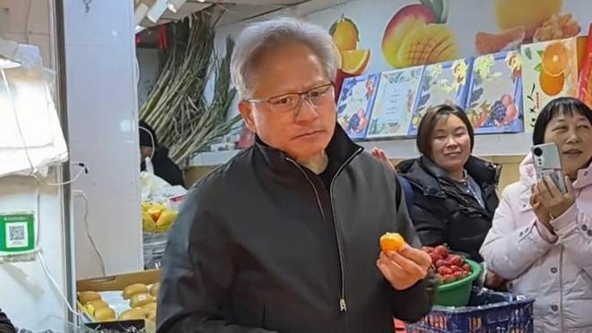 根据有限曝光的信息,1 月 24 日,黄仁勋来到浦东新区陆家嘴街道乳山路锦德菜市场,买了一袋耙耙柑,还给店主送了一个签名红包,晚上则参加英伟达上海年会。