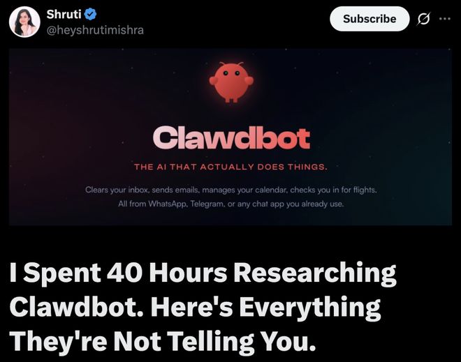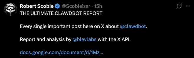 一位开发者 Robert Scoble 做了一个「终极 Clawdbot 报告」,已经被人们传疯了。