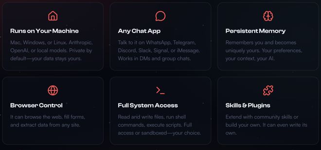 它具备持久的自主性,能够自主执行任务并自我提升;它支持多智能体系统,可以根据需求瞬间克隆出整个部门;保证了本地控制与隐私。