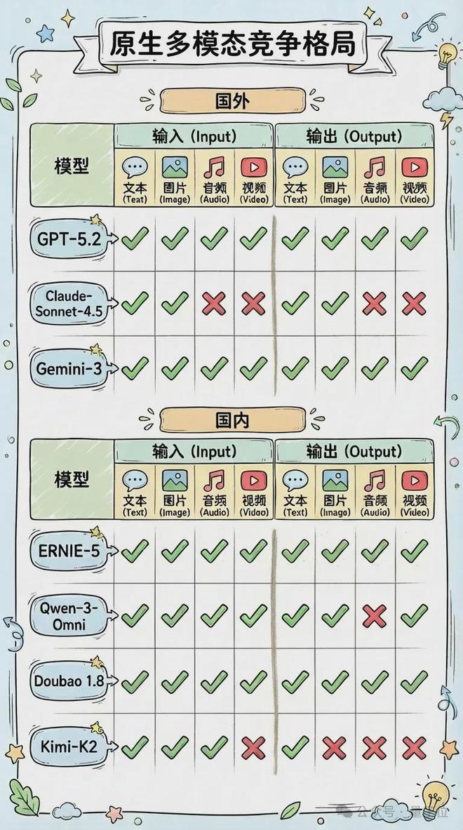 在国外,OpenAI 的 GPT-4o、Google 的 Gemini 3 等模型已展现出原生全模态的强大潜力;在国内,文心 5.0 押注的正是这条更底层、也更长期的技术路径。