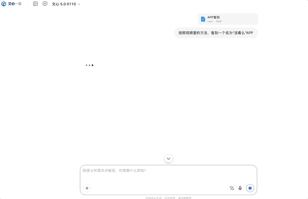 文心 Moment 大会现场,官方演示时输入了一段博主复刻“死了么”App 教程视频,让文心 5.0 生成一个“活了么”App 教程。