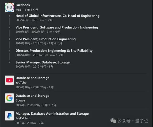 而在 Meta 的这十几年,他一路从数据库高级经理干到全球基础设施负责人,工程及管理经验都很丰富。