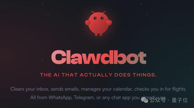 按 Clawdbot 官网上的介绍,这个 AI 智能体没有干不了的事,它可以整理邮件、管理日程……而且只要用你常用的聊天软件就能对它发号施令。