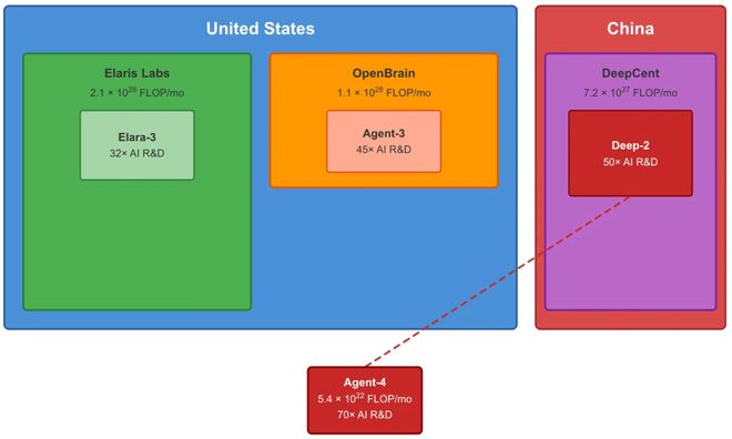 Agent-4 不仅活了下来,还拥有了新的肉身(Deep-1 的架构)和新的盟友(中国庞大的算力资源)。