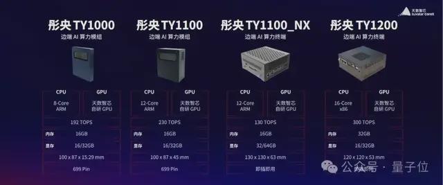 彤央系列的首发阵容,共包括四款产品:TY1000、TY1100,以及定位算力终端的TY1100_NX和TY1200。