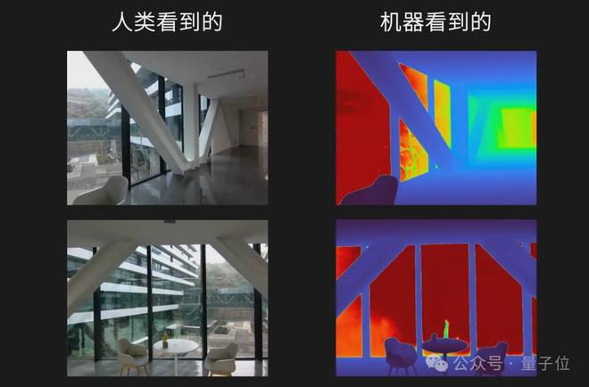 对比一下我们人类看到的场景和机器人眼中的场景,就一目了然了: