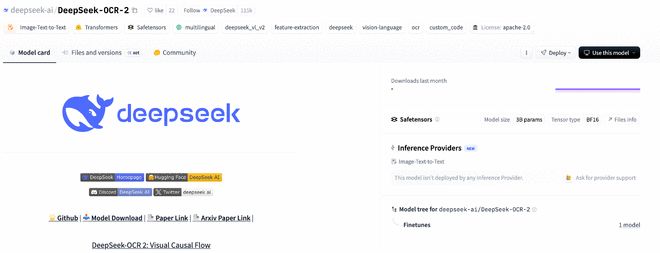 1 月 27 日消息,临近春节,DeepSeek 团队今日在 HuggingFace 和 GitHub 平台正式开源其新一代视觉语言模型——DeepSeek-OCR 2,并同步发布论文《DeepSeek-OCR 2: Visual Causal Flow》,揭示其在视觉编码逻辑上的重大突破。