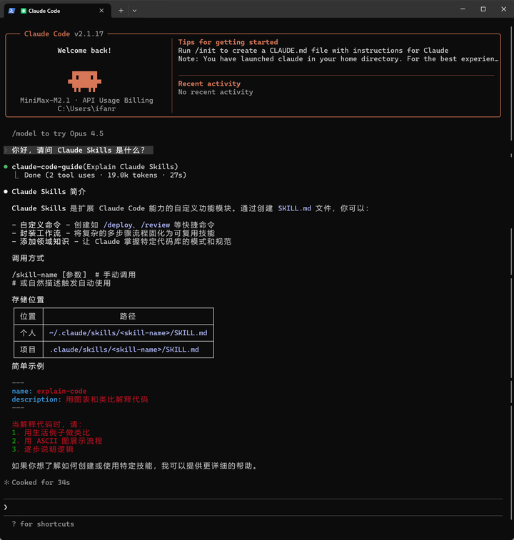 除了通过斜杠 / 来启用对应的 Skills,在 Claude Code 里,它也能自动调用对应的 Skills 来完成我们下达的任务。