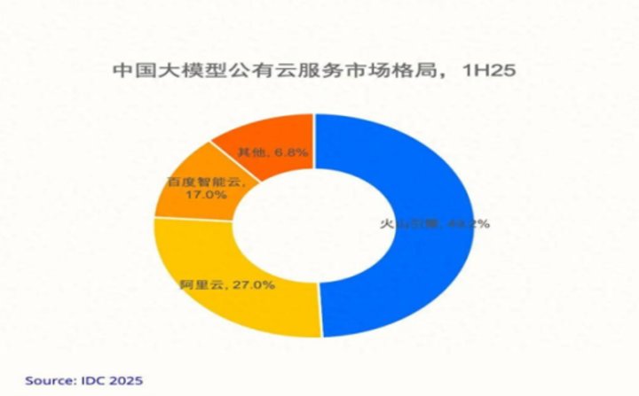 但如果把目光聚焦到 MaaS 细分市场,火山引擎的表现堪称“降维打击”。IDC 数据显示,2025 年上半年,火山引擎在大模型公有云服务调用市场的份额达到 49.2%。