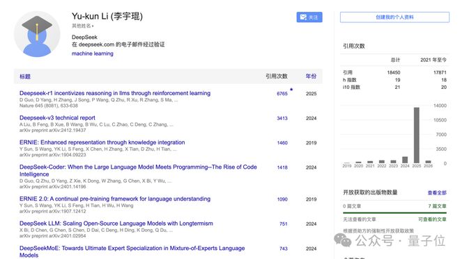 李宇琨,谷歌学术论文近万引研究员,也持续参与了包括 DeepSeek V2/V3 在内的多款模型研发。