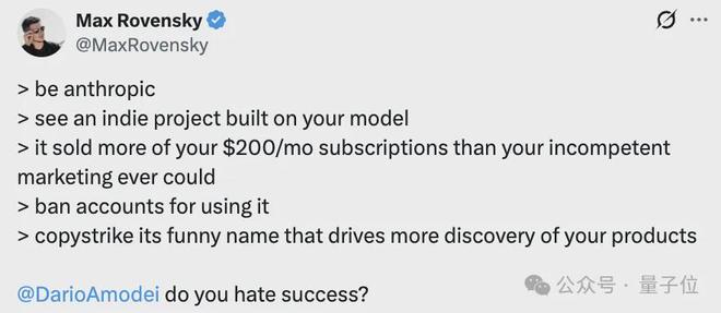 其中就引发了不少粉丝的不满,有开发者还特意在平台艾特 Anthropic CEO Dario Amodei,质问其是不是见不得别人成功。