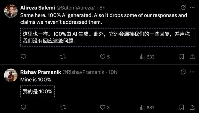 有投稿人直言,100% 的评审意见全是 AI 生成的。