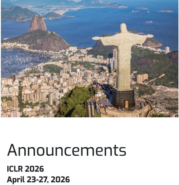 顺便提一句,本届 ICLR 将于 2026 年 4 月 23 日至 27 日在巴西里约热内卢举行。