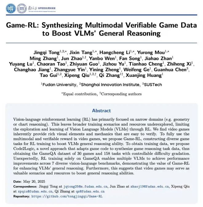 复旦仝竞奇等在被接收的工作中,发现游戏任务训练可以提升 AI 的通用推理能力。